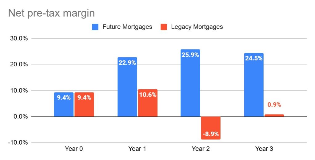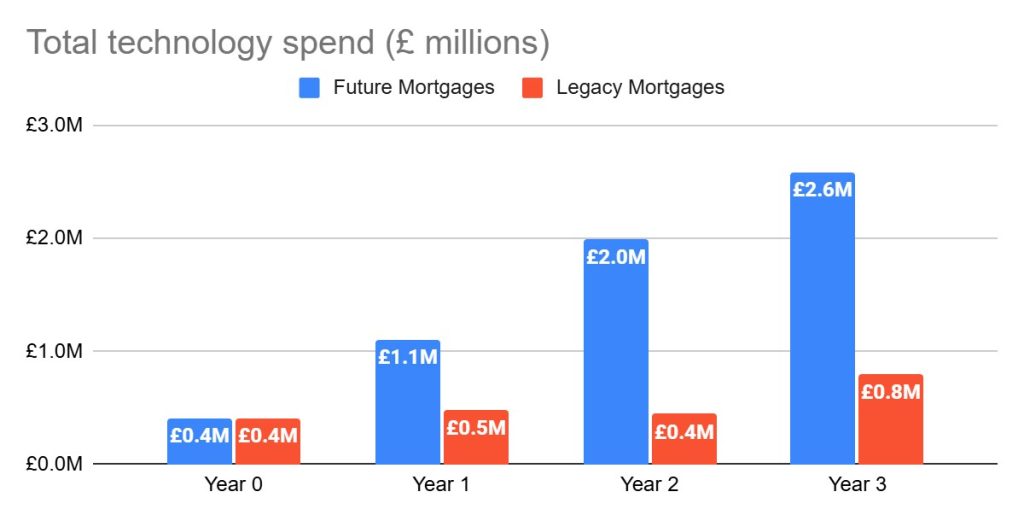 - The mortgage brokerage industry is competitive, so margins are tight, but reasonably predictable. Each company generates a net pre-tax margin of 9% after paying for support staff and other overheads. This includes a relatively modest annual technology budget of just over ยฃ400k – equivalent to roughly ยฃ200 per employee per month to cover the various SaaS tools they use and provide secure cloud connectivity for their hybrid workforce.